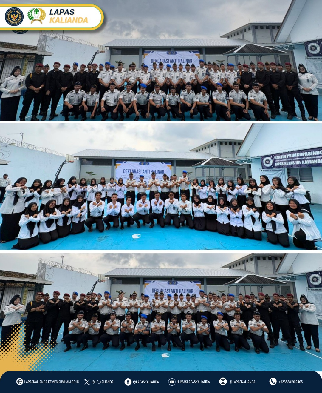 Deklarasi dilaksanakan secara khidmat dan penuh kesungguhan, menjadi simbol tekad bersama untuk menolak segala bentuk pelanggaran di dalam lapas. Dalam kegiatan tersebut, dilakukan pula penandatanganan deklarasi oleh seluruh pegawai serta perwakilan WBP sebagai bentuk komitmen nyata dalam mendukung terciptanya Lapas Kalianda yang bebas dari HALINAR.