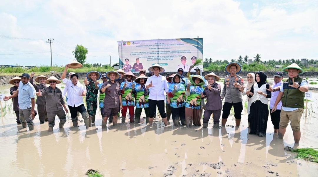 Kerja sama itu diwujudkan melalui penanaman padi biosalin di Desa Bandar Agung, Kecamatan Sragi, disertai peresmian Koperasi Konsumen Adhyaksa Mandiri Sejahtera Lampung, penyerahan sertifikat halal dan PIRT, bantuan CSR untuk UMKM, hingga penandatanganan sejumlah akta kerja sama kelembagaan.