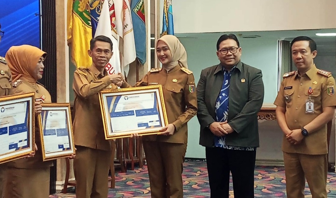 Penyerahan penghargaan berlangsung di Gedung Balai Keratun Lantai III, Kompleks Kantor Gubernur Lampung, Senin (9/2/2026), dan diserahkan Wakil Gubernur Lampung, Jihan Nurlela kepada Plt Asisten Administrasi Umum Setdakab Lampung Selatan, Edy Firnandi, disaksikan Kepala Ombudsman RI Perwakilan Provinsi Lampung, Nur Rahman Yusuf.