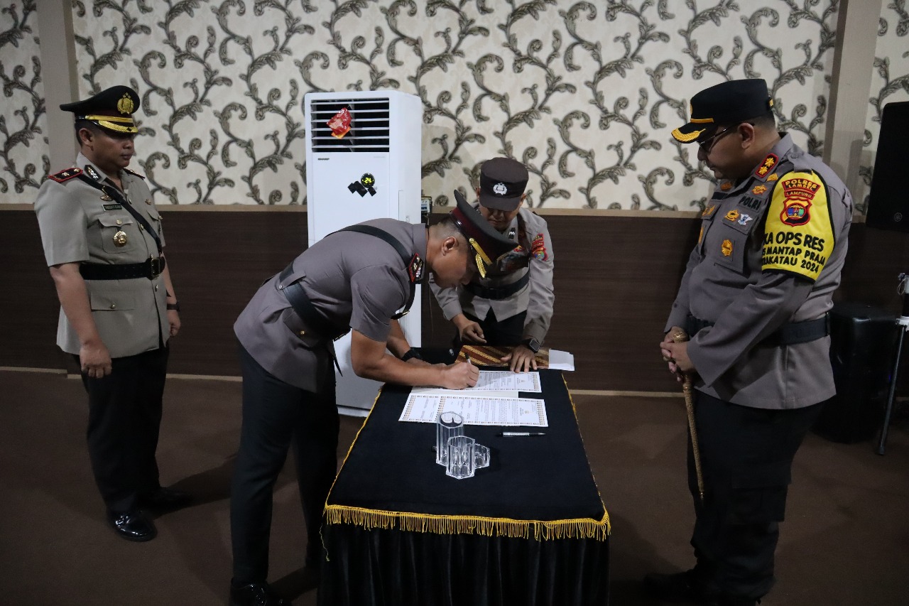 Tiga pejabat yang dilantik dan diambil sumpahnya adalah Kompol Tangguh Satya Buana sebagai Wakapolres Lampung Selatan, AKP Abkoriyah sebagai PS Kabag Ren Polres Lampung Selatan, dan Kompol Defrison sebagai Kabag Ops Polres Lampung Selatan.